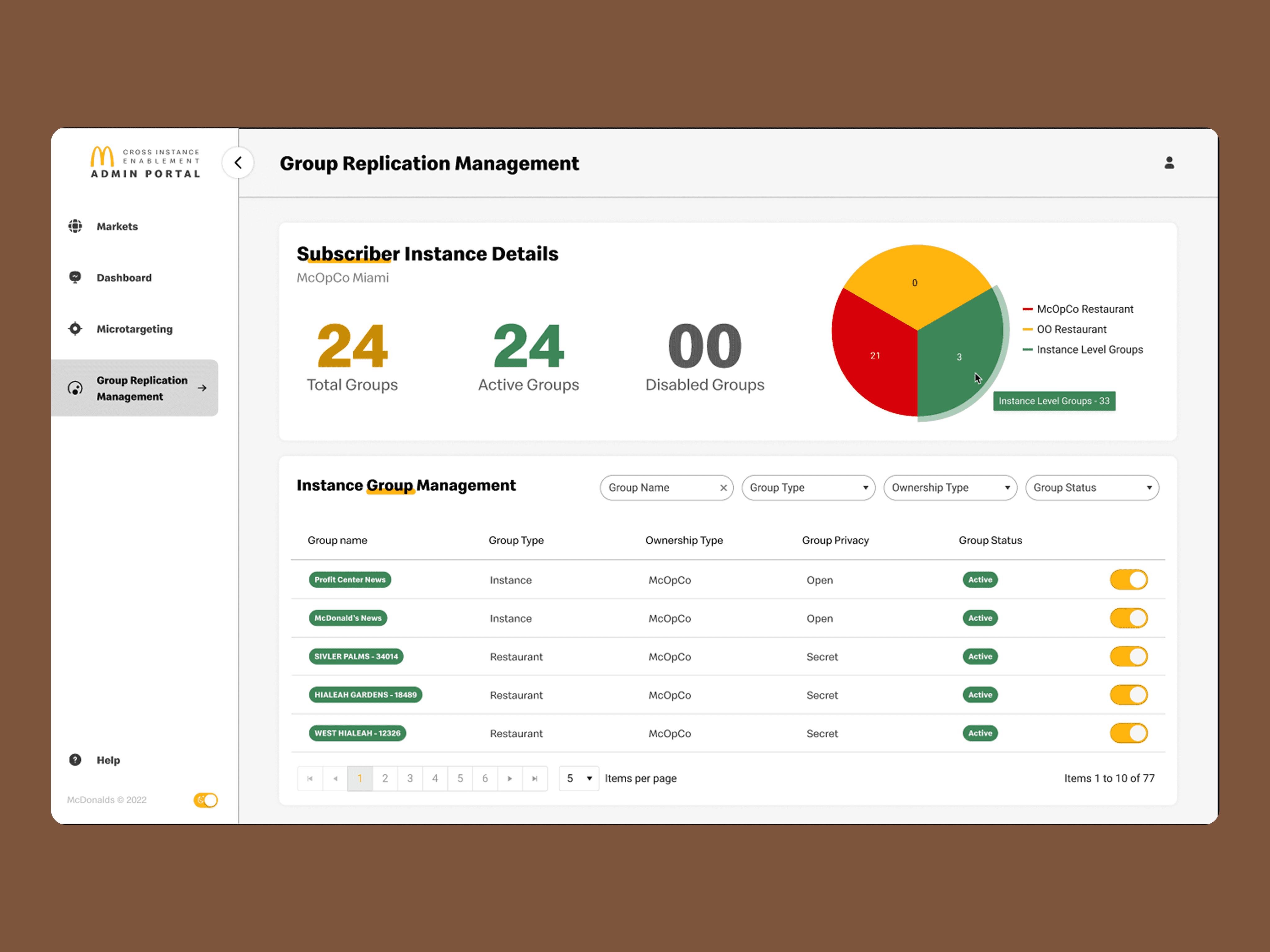 Administrators needed to onboard instances, manage permissions, and control content across markets — all within strict business rules and security constraints. The existing experience was fragmented and difficult to reason about.